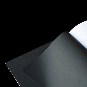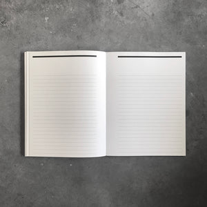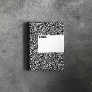 Comp is an elegant, sophisticated, and long-lasting version of the classic composition notebook, created by designer Aron Fay. The notebook is available in lined and unlined paper variations. Product details include: front cover with custom drawn pattern and redesigned offset label; layflat binding which opens completely flat to reveal ultra white, smooth 120 gsm uncoated paper; detail of book spine made with beautiful Italian Cialux cloth and thick, durable ‘boards on’ covers; lined version features optimized 3/8" ruling and black interior feint lines; and color-through dyed black endsheets.